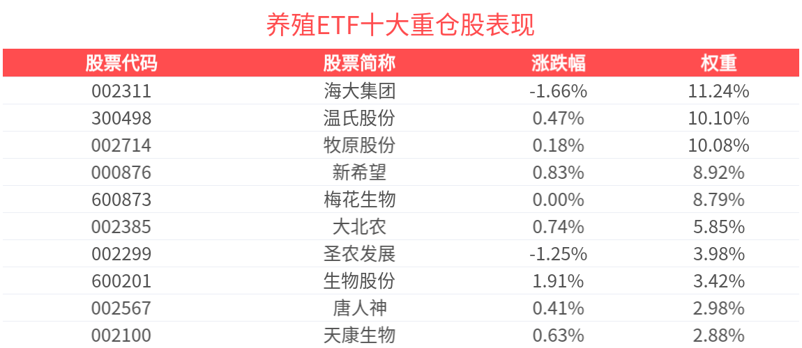 养殖ETF紧密跟踪中证畜牧养殖指数,中证畜牧养殖指数选取涉及畜禽饲料、畜禽药物以及畜禽养殖等业务的上市公司证券作为样本,以反映畜牧养殖相关上市公司的整体表现。