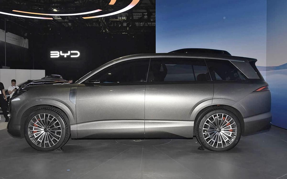 唐9系旗舰SUV的侧面造型轮廓很方正硬朗,从细节来看,和此前亮相的Dynasty-D概念车9688策略宝基本一致。车窗同色涂装的D柱造型很宽厚,车窗上部镀铬饰条延伸到D柱上部。这辆全新旗舰SUV的车身长度也会在5米以上。